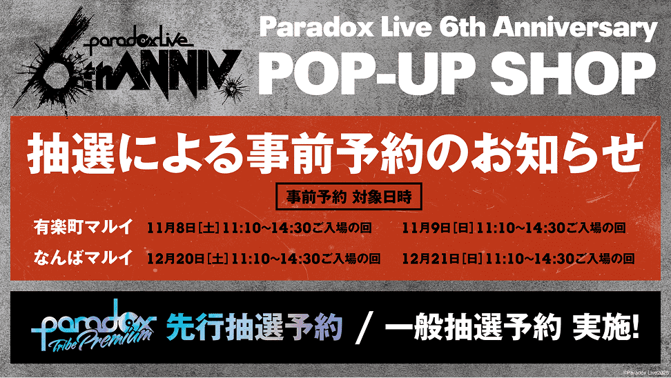 Paradox Live 6th Anniversary POP-UP SHOPの開催が決定!