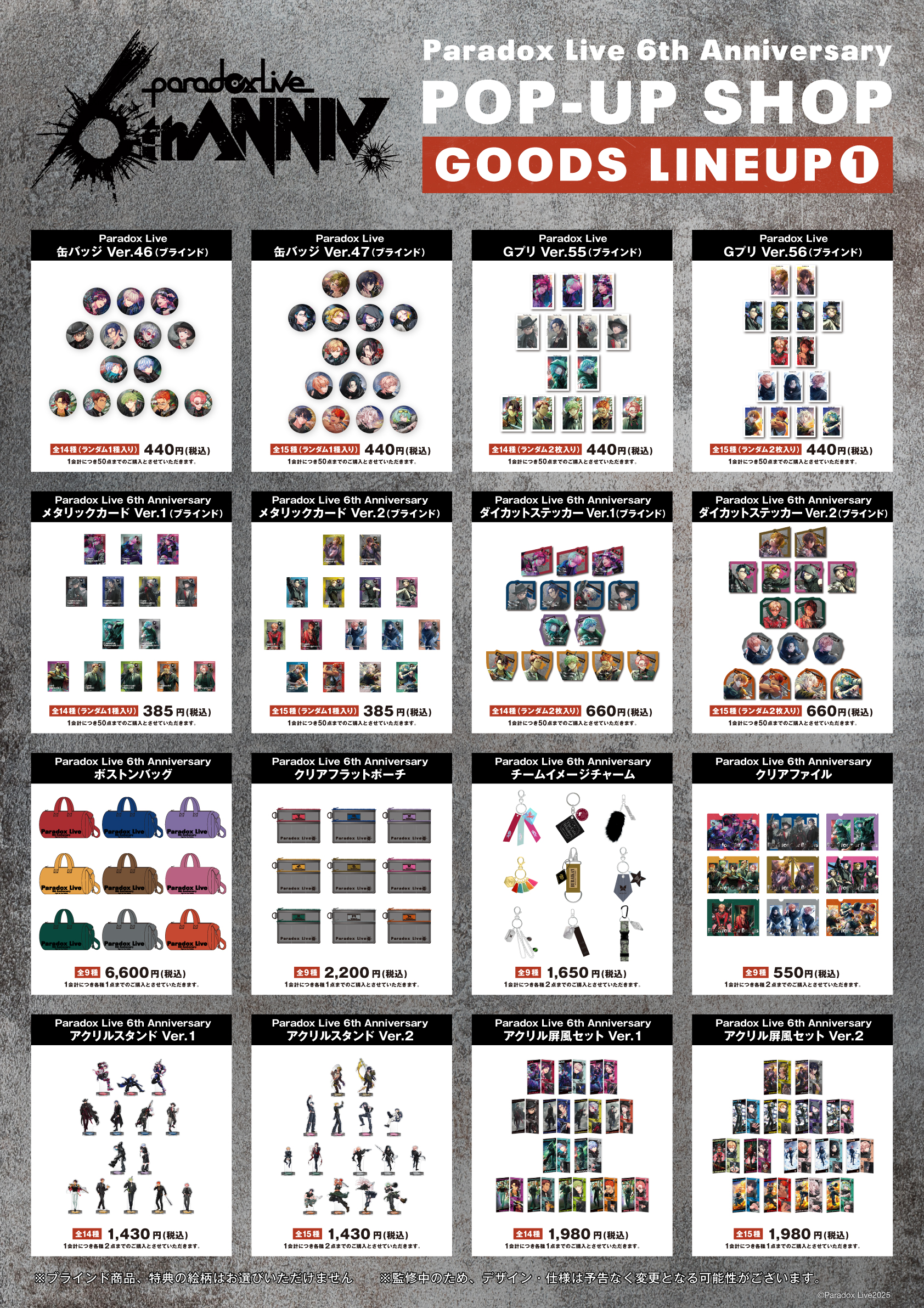 ※ 上記以外の販売中のParadox Live商品も一部入荷予定です。